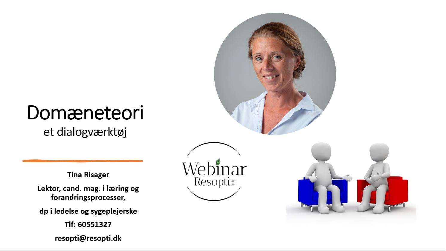 • Underviser: Lektor, cand.mag. Tina Risager, CEO Resopti og lærings- og refleksionsplatformen Webinar Resopti©