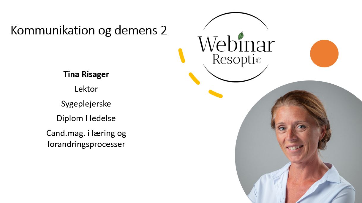 Webinaret Kommunikation og demens 2 tager afsæt i den personcentrerede tilgang, som er beskrevet af psykolog og professor Tom Kitwood og sygeplejerske og ph.d. Anne Marie Rokstads beskrivelse af arbejdet med den gode relation.