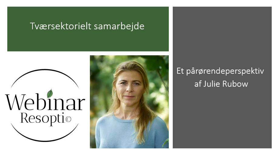 Hvis du vil vide mere om det Tværsektorielle samarbejde, så se med i Webinaret Tværsektorielt samarbejde, hvor jeg med afsæt i sygeplejerske og ph.d. Ditte Høgsgaards beskrivelse af udfordringer, kommunikation og kompleksitet i det tværsektorielle samarbejde, vil illustrere nogle af de vanskeligheder familier kan opleve i overgangen mellem primær og sekundær sektor. Webinaret indeholder et pårørendeperspektiv – Julie Rubows beskrivelse af sine oplevelser som pårørende i et tværsektorielt forløb.